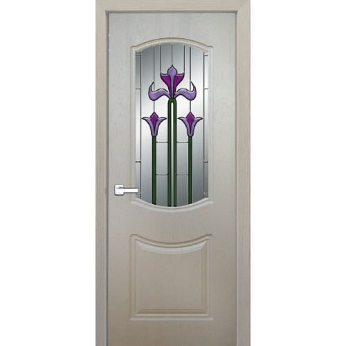Дверь с ПВХ покрытием Эмма 120 ДО (Дуб Верона Крем, Цветной наливной витраж)