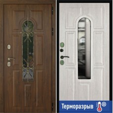 Входная дверь "ЛИОН" ТЕМНЫЙ ОРЕХ / АЛЬБЕРО БРАШ СЕРЕБРО ТЕРМО С ТЕРМОРАЗРЫВОМ