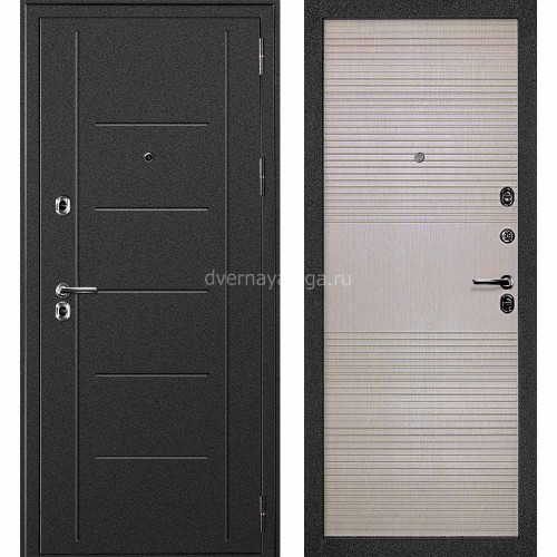 Также дверь стальная "Термаль" Беленый дуб оснащена двумя сейфовыми сувальдными замками четвертого класса взломостойкости, эксцентриком с возможностью регулировки притвора, утепленной рамой, тремя контурами уплотнения Shlegel (Германия) по периметру двери (2 конута + 1 магнитный) и тремя петлями на подшипниках.
